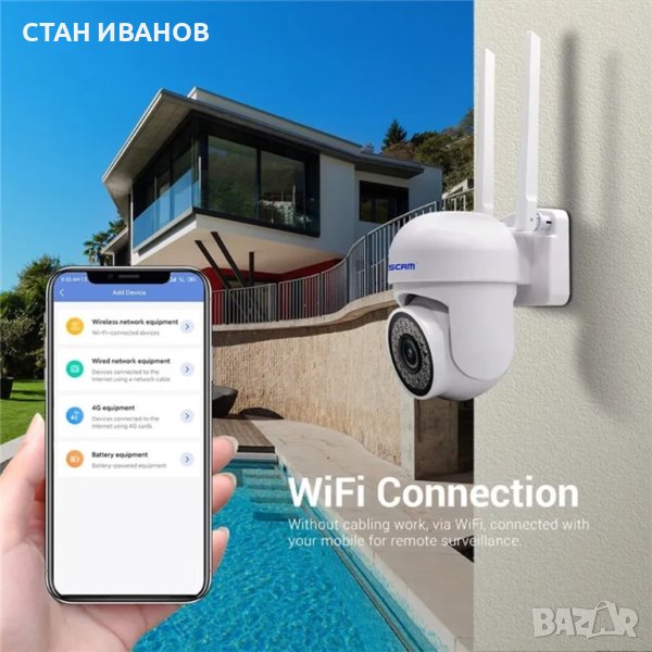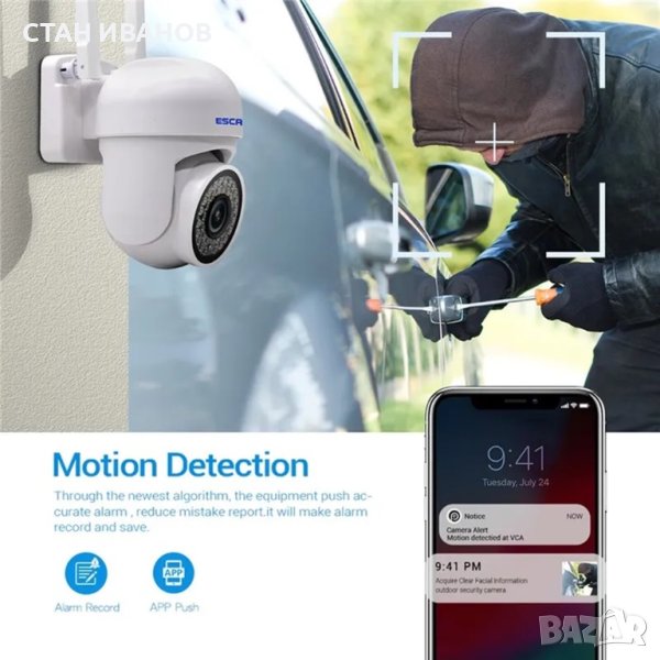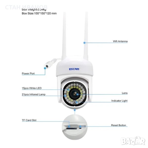 Безжична IP камера ESCAM, Модел PVR007, FHD, 1080P, H.265, 3 Megapixel, WIFI, Водоустойчива.
