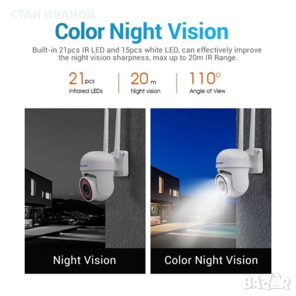 - Интелигентно нощно виждане с двоен източник на светлина, 12 инфрачервени лампи, 12 бели лампи, 20 метра разстояние за откриване.
