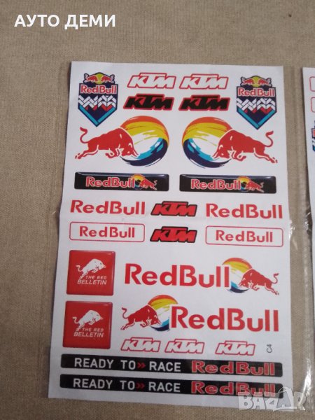 Качествени цветни самозалепващи стикери лепенки Ред Бул Red Bul и КТН KTN за кола автомобил мотор → Обява 40492889