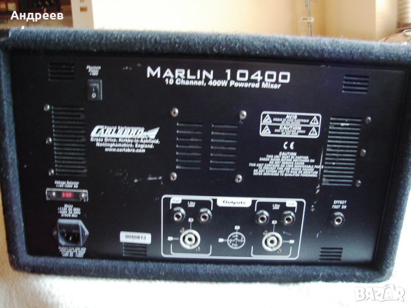 CARLSBRO MARLIN 10400-пауър миксер, 2х200 вата, 10 канала,16 ефекта,2 стерео канала.Английско производство.Изходи на спикони и жакове/по два на канал/.Като ново,ползвано е само у дома.