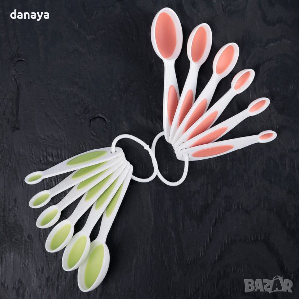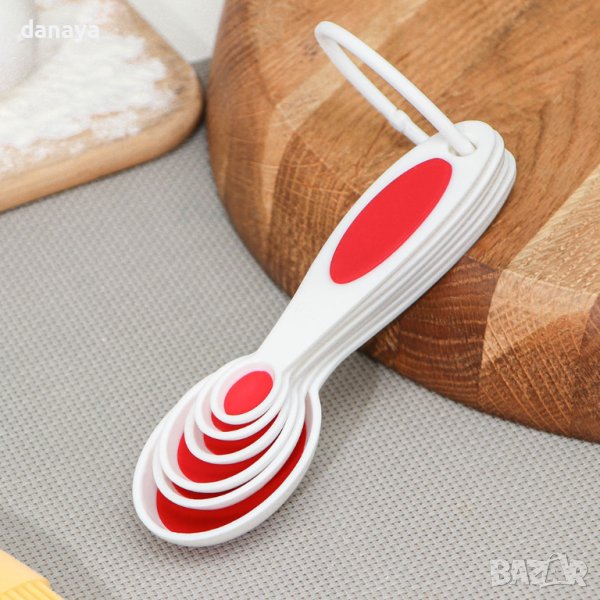 Комплект от 6 броя мерителни лъжички събрани в ринг, без да се разпиляват в шкафа. Всяка от лъжичките е с различен размер – 0,62мл; 1,25мл; 2.5мл; 5мл; 7.4мл; 15мл. Изработени са от здрава пластмаса и силикон.