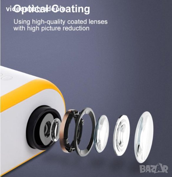 Ултра портативен, лесно преносим и с компактен размер, което прави използването на проектора изключително удобно и лесно. В комплекта има дистанционно управление и AV кабел конектор. Проекторът има елегентна визия в бяло и жълто.