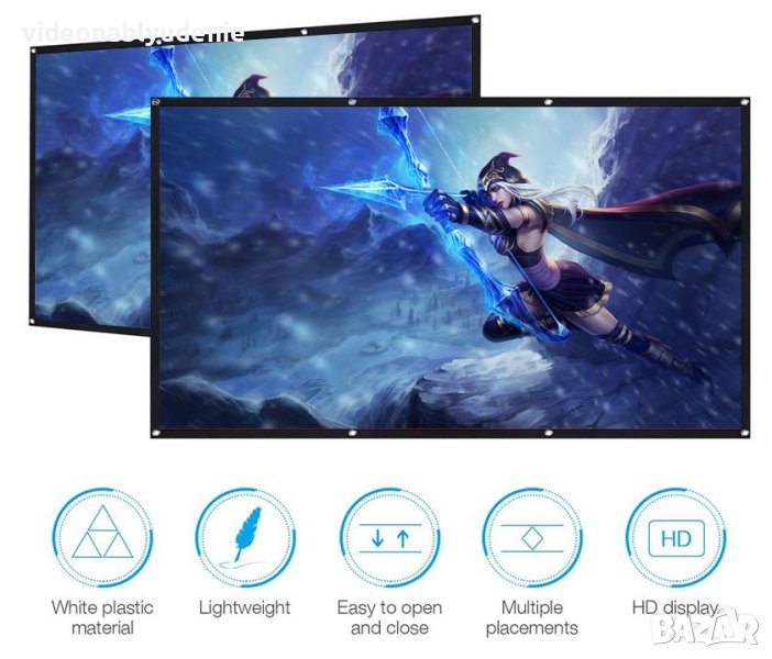 Ако желаете се доплаща + 49.98 лв за 16:9 Anti Light 100" 220х124см Сгъваем Преносим 3D HD Прожекционен Екран 160 Градуса Ъгъл на Виждане.