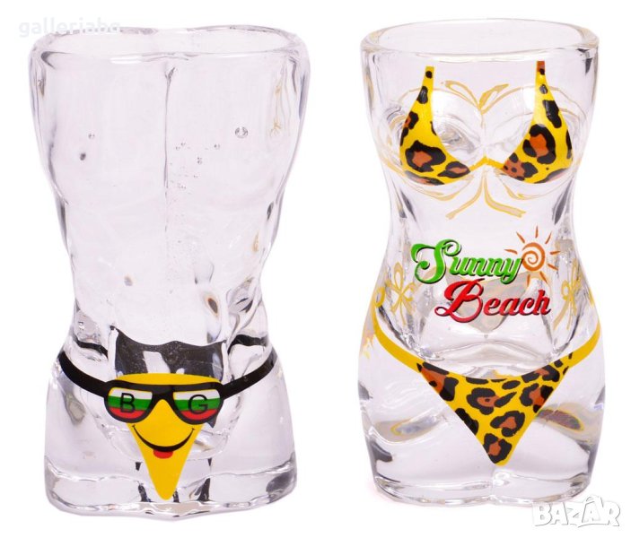 Комплект 2 бр. чаши мъжко и женско тяло в бански. Надпис - Слънчев бряг.