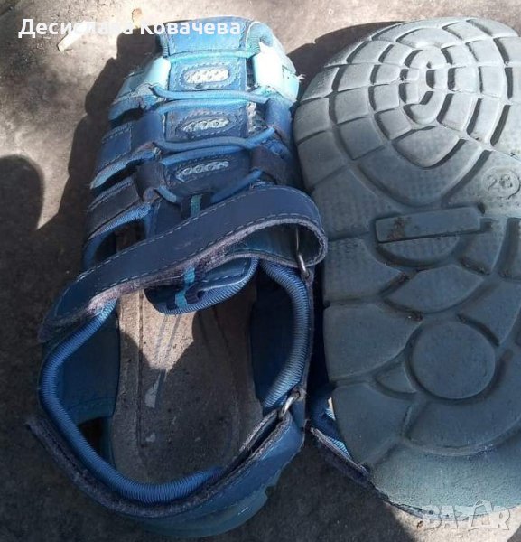 Детски сандали, унисекс, 28 номер, носени. Но има още живот в тях. Забележката е, че вътре стелката има следи от употреба.