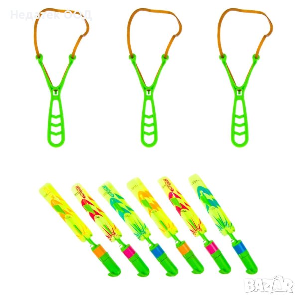 Активирайте мощната LED светлина, прикрепете стреличката към прашката и я изстреляйте. Достига до 36 метра. За употреба на открито, където се спазват правилата за безопасност.
