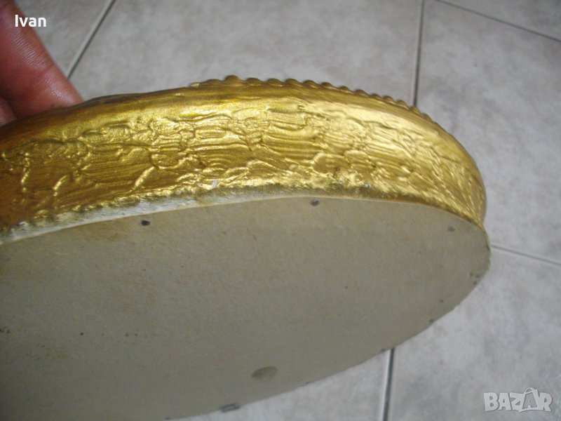 Отзад гърба на рамката е с дебел картон/табак, прикрепен стабилно и здраво с малки пирончета. Поставена кука за окчване.