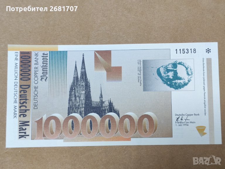 банкнота 1000000 германски марки 1994 г. Автентична → Обява 40500937