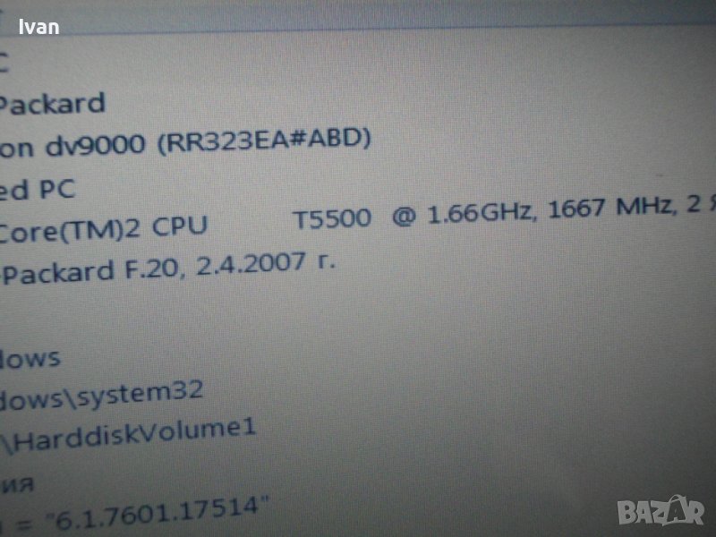 Цена на лаптопа HP Pavilion DV 9000 от обявата с неработеща батерия и английско зарядно с вграден USB порт - 299 лв.