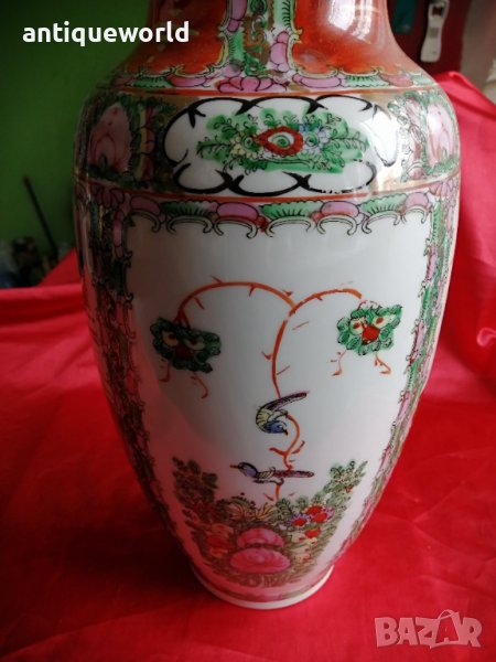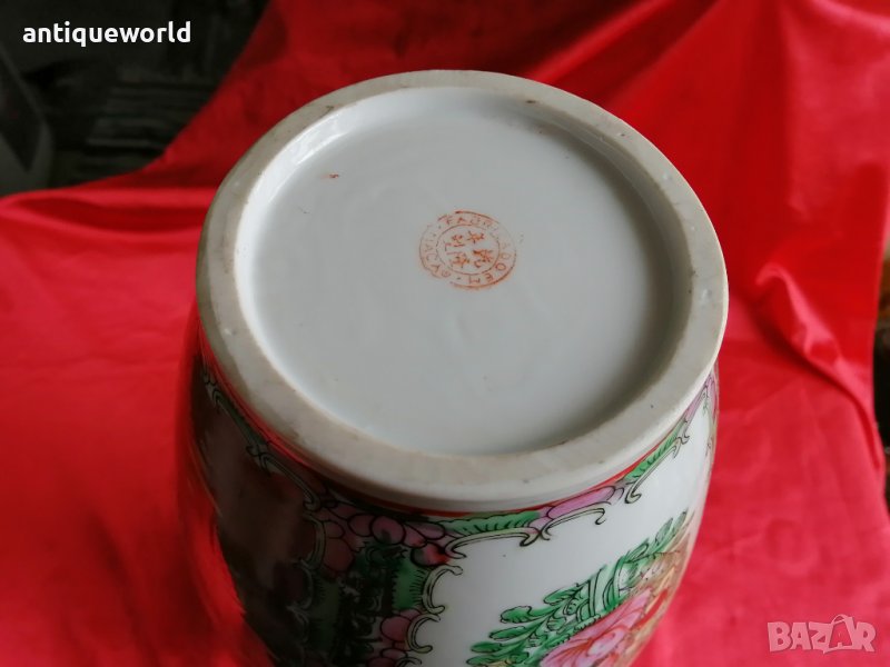 Много Красива Голяма Стара Ръчно Рисувана КИТАЙСКА Порцеланова Ваза Family Rose ,Маркирана . Здрава перфектна за възраста си.