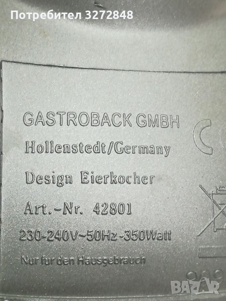 Немски уред за варене на яйца/яйцеварка/-GASTROBACK- 350w → Обява 40505123