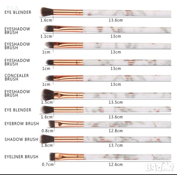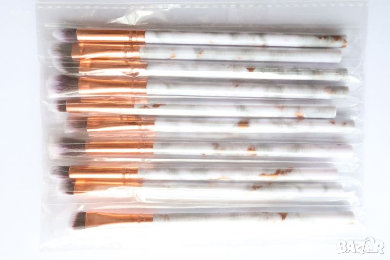 Комплект от 10 броя четки с уникален дизайн. Изработени от мек изкуствен косъм, който нанася лесно и равномерно грима.