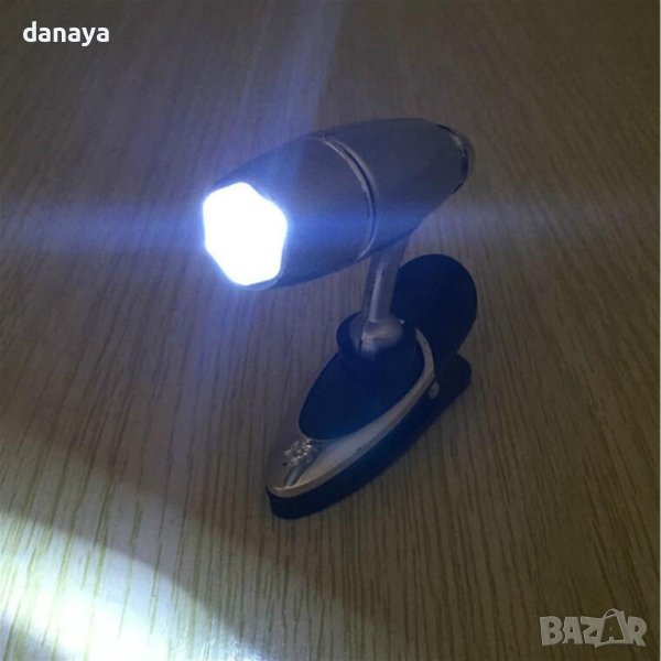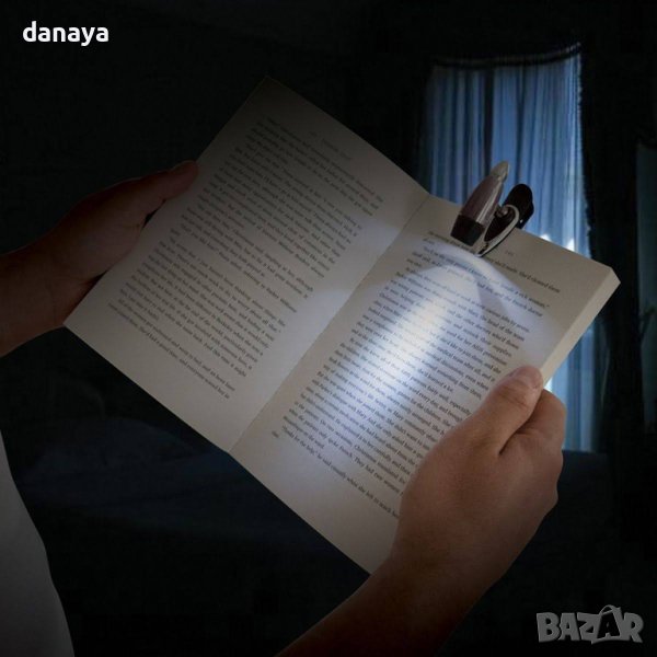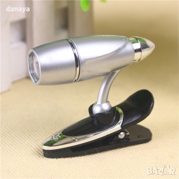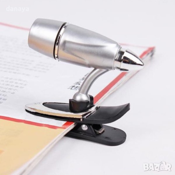 лампа за книга с щипка в джобен размер, подходяща за четене нощно време на хартиена книга или друго електронно устройство. Регулиращо се тяло, което позволява да наместиш светлината точно, където ти е необходима.