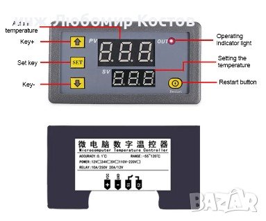 включва и изключва релето според настройката! Изходът на термостата е 20A реле,