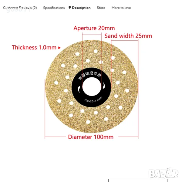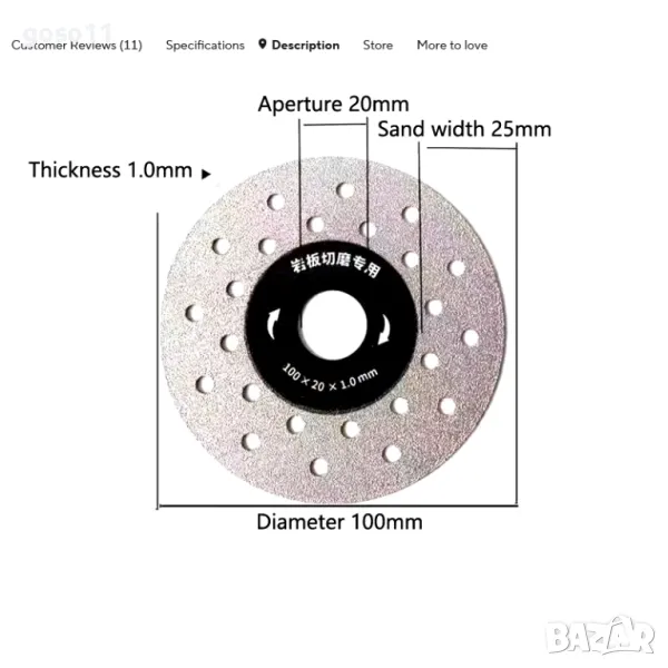 * Диаметър: прибл. 100мм/115мм/125мм *Отвор: прибл. 20мм/22,23 мм *Дебелина: 1/1,2 мм.