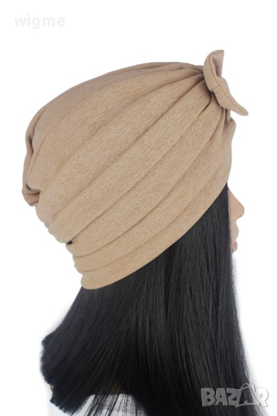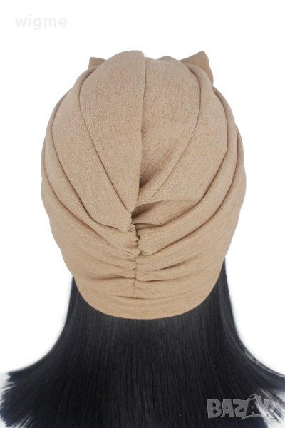 Стилен, луксозен едноцветен тюрбан в бежов цвят.