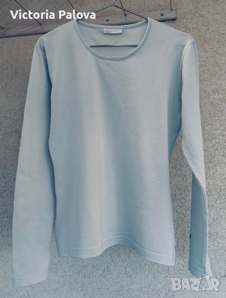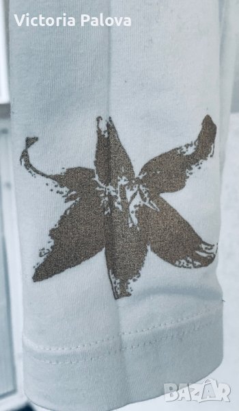 Неизползвана блуза, марка сегмент лукс, нищо особено , освен самата марка( немска с италиански корени) и интересно украсен ръкав със златиста щампа и логото на гърба. рамо - 42-44см, ГО- 50см, дължина- 61см, ръкав- 61см.