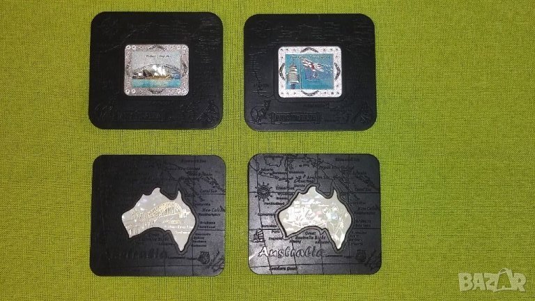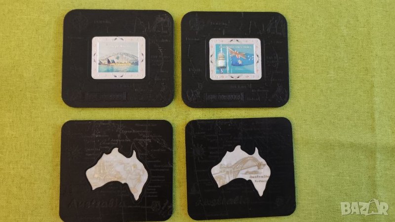 Четри броя подложки за чаши АВСТРАЛИЯ, много красиви, нямат забележки.