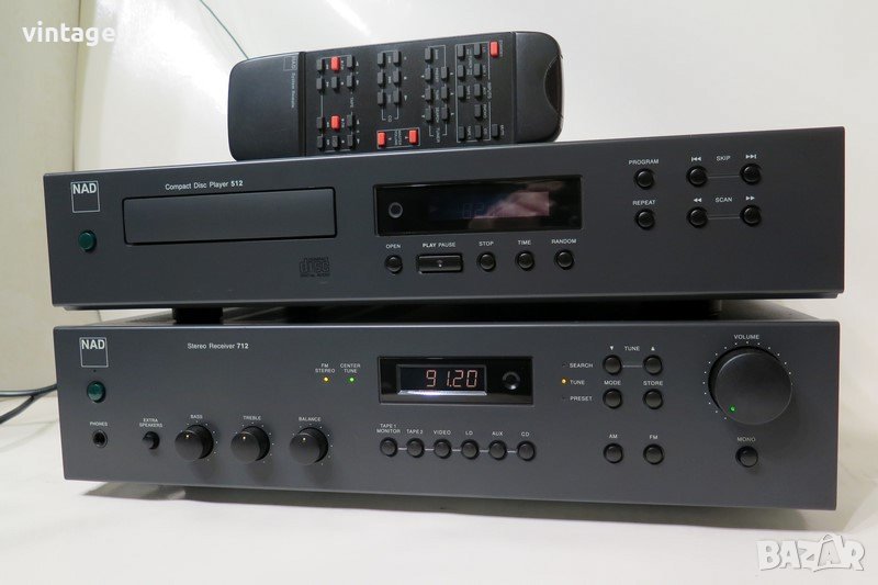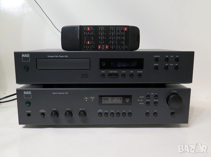 Качествен сет от NAD, състои се от транзисторен стерео ресийвър NAD 712 и стерео CD плеър NAD 512. Отлични технически и визуално. Налично оригинално дистанционно управление, което управлява напълно двата компонента, има и опция за управление на дек. Приложените снимки и видео са реални!