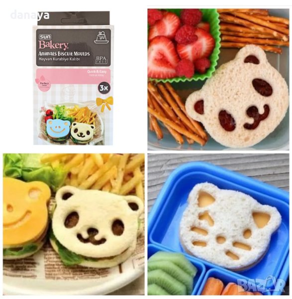Един по-раличен комплект форми за сладки, който включва резец и 3 различни щампи с животинки – панда, жабка и котенце Кити. Комплектът е много подходящ за приготвяне на детски сандвичи, дребни сладки. Децата ще се зарадват на тези сладурски формички! Експериментирайте!