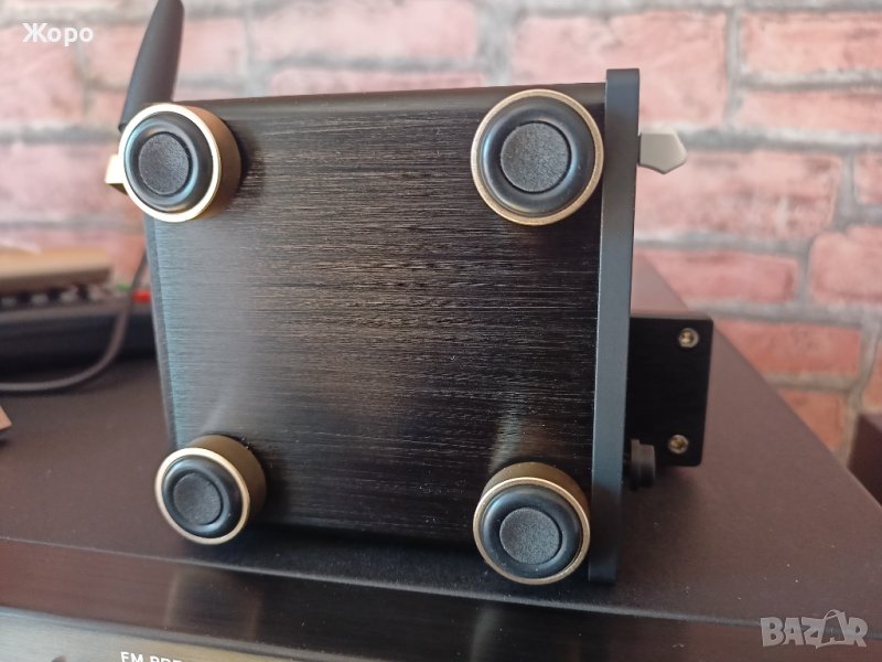 Устройството е изградено с подбрани аудиокомпоненти Elna Starget, Sanyo Oscon,
