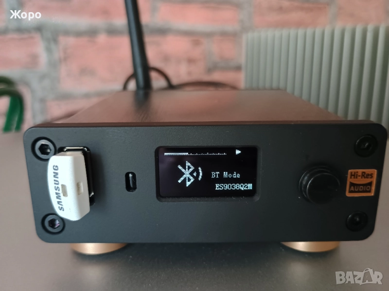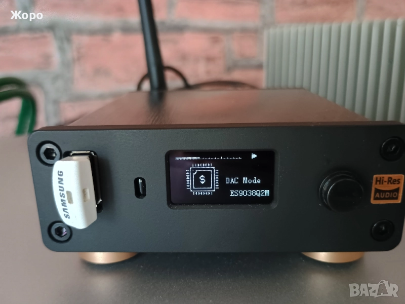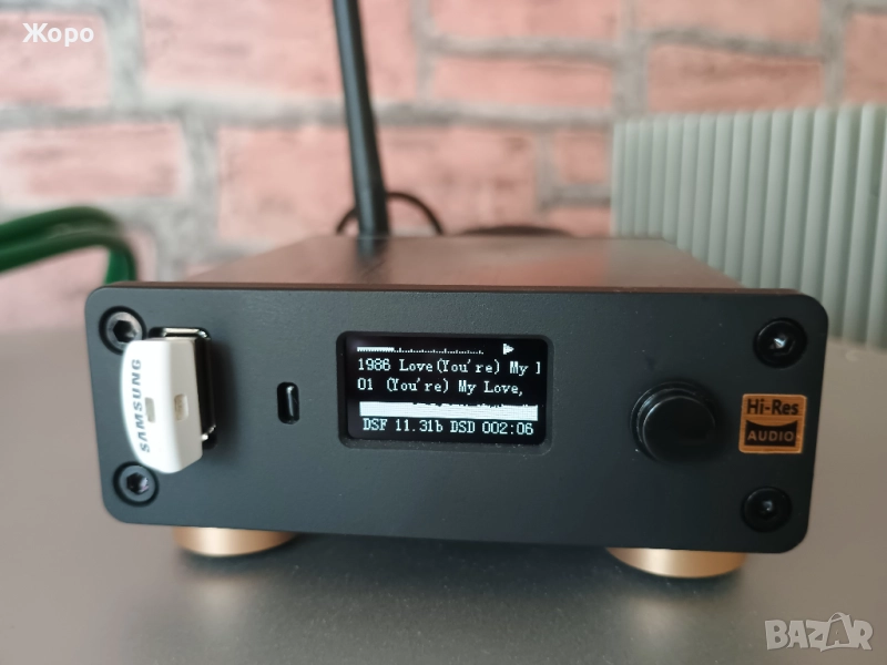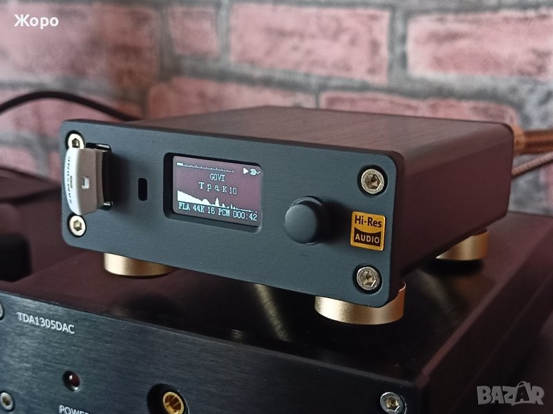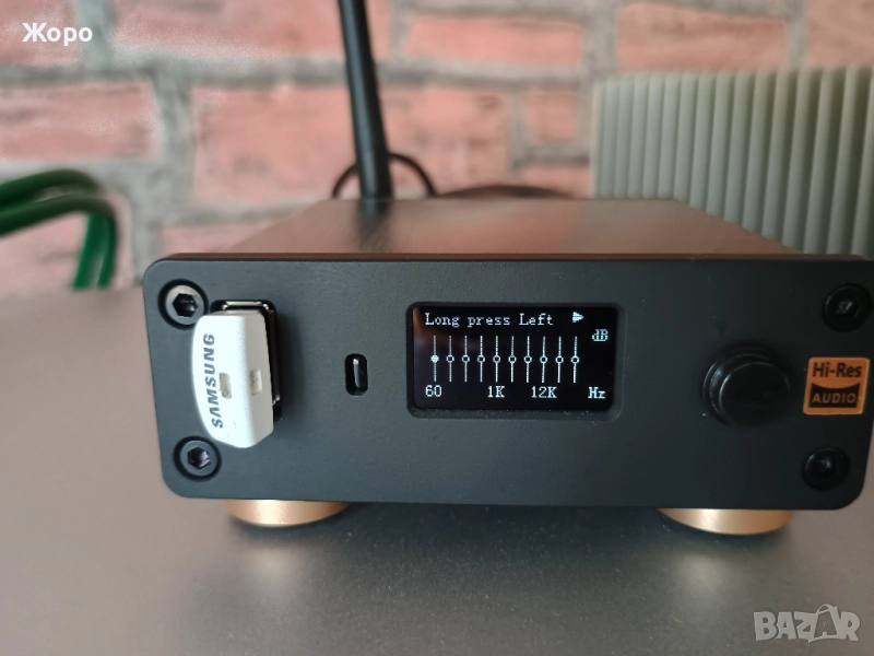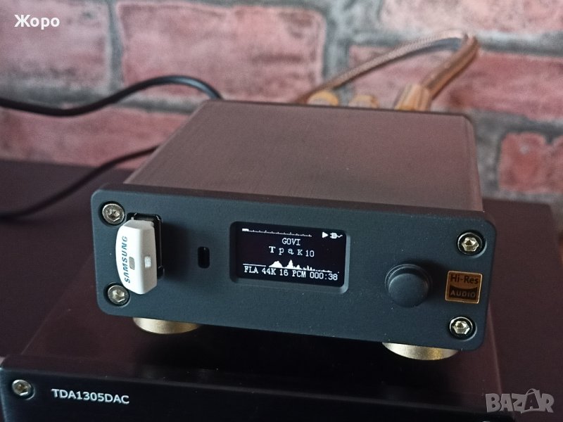 Срам за "марковите" дребосък, с 4 ядрен процесор, 2GB rom, свири директно файлове DSD, DSF, ISO SACD-R (реални SACD образи), DSD256, ISO Flac, Flac Alac, WAV, WAV ISO и мн други. Вграден USB вход от PC в режим външен DAC DSD256 / PCM32bit/384kHz. Има функция транспорт към друг външен дак към Spdif/Toslink при DSD256/ PCM32bit-384kHz в режим USB или Blt външен дак, както и в режим USB плеър, 40 канален спектрален анализатор, 16 канален графичен еквилайзер, 8 кратен цифров филтър за скоростите на цифровото конвертиране, блутут стеиймър, дак, плеър, LG Oled дисплей с contrast ratio 5900:1, изписва песни и на Кирилица!! Памет за песни. Предусилвател 100 стъпки. Захранва се от външна батерия 5V, с изкл ниска консумация от едва 70mA, несъпоставимо качество на звука с настолни устройства от всякакъв тип на българският пазар. Kъм всяко устройство в комплекта USB кабел, антена, дистанционно и опаковки.