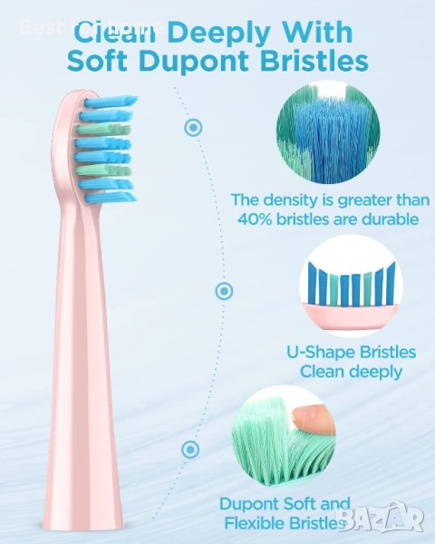 По-дълбоко почистване за възрастни и детски зъби: Тези косъмчета с W-форма, които пасват на формата на зъбите и са удобни и ефективни, идеални за венците и малката уста на децата, премахват плаката, намаляват оцветяването и освежават дъха