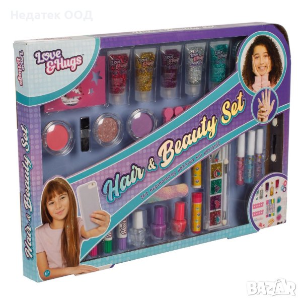 Игрален комплект с всичко необходимо за създаване на нова прическа и грим. Направете най-стилните прически с аксесоари, шаблони и блясък, придайте цвят на устните си с прекрасен гланц за устни, накарайте очите си да магнетизират с ярки сенки и лакирайте ноктите си в най-модерните цветове.
