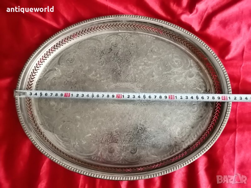 Много Голям Стар Красив Английски ПОСРЕБРЕН Поднос , Табла. С гравирани Флорални мотиви.