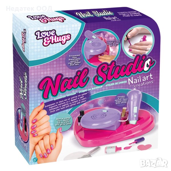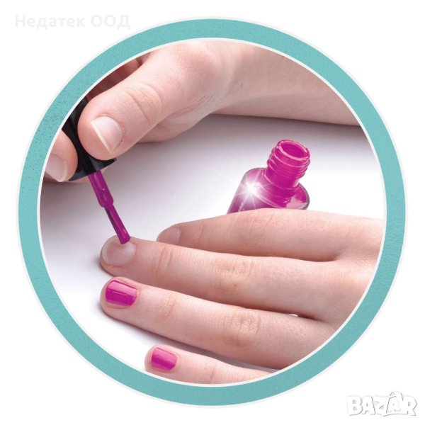 Комплект играчки за ноктопластика, за да украсите ноктите си с оригинални цветове и блясък. Съдържа сушилня за изсушаване на ноктите за постигане на впечатляващ резултат. Станцията има място за съхранение на аерограф, за да ви помогне да създадете модерен външен вид. Работи с 2 батерии АА (не са включени).