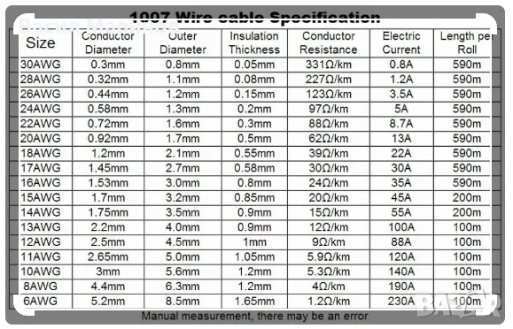 11. AWG 28 (0.08 кв. мм сечение) До 1.2А - 1.3 лв за метър - Налични са Червен и Черен цвят