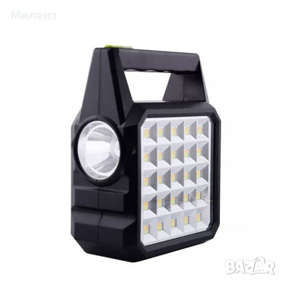 Соларната система е предназначена за използване при къмпингуване, ловно-риболовни излети, лагери, походи и др. където има нужда от осветление на няколко обекта, музика, а също и от зареждане на мобилни устройства като GSM, GPS, PS и др. Състои от соларен панел, фенер, прожектор, 3 LED лампи и кабел за зареждане на поратативни устройства. Лампите са оборудвани с ключове за пестене на ел. енергия. Фенера/прожектора могат да се зареждат от слънцето посредством соларния панел в комплекта или чрез USB порта. Има вграден акумулатор, три изхода (OUTPUT) за включване на осветителни LED лампи, един USB порт за зареждане на портативни устройства, вход за соларен панел, LED сигнализация.