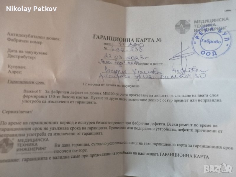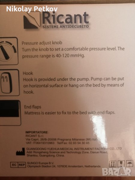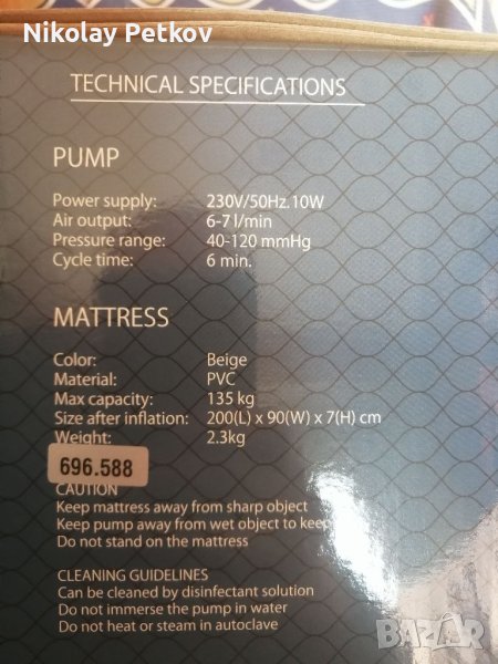Продавам антидекубитален дюшек модел SY200, който единствено е разопакован и изпробван, но не е ползван.