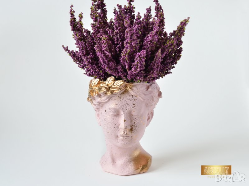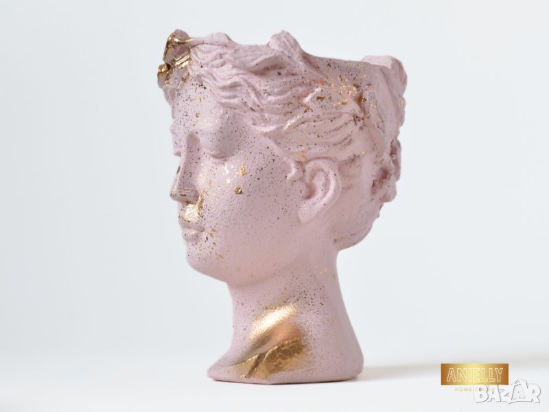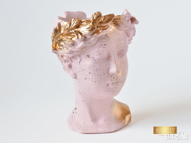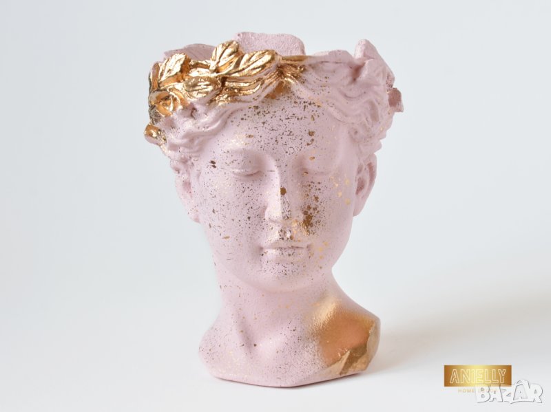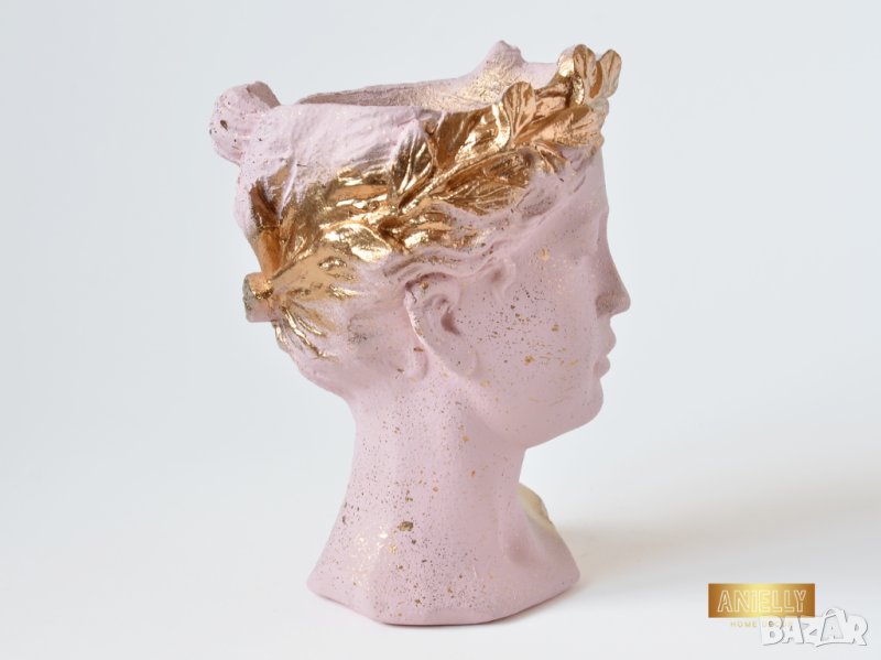 Саксия глава на гръцка богиня / Ваза Венера / Декоратив саксия за цветя в цвят розово и златно