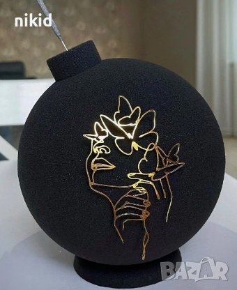 7 вид Абстрактно дамско лице с пеперуди златен контур топер украса декор торта → Обява 40523204