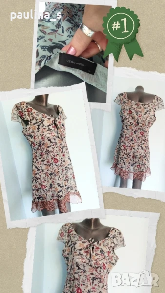 3️⃣. Колаж / L / 2XL - "Vero Moda". Цената е крайна 34,99лв / 17,5 евро. Много нежна и ефирна рокля от копринен шифон с лека еластичност, във флорален принт на основен фон цвят Мента. Бюстието в горната част е подплатено, подходяща е и за плаж. Нова без етикет, една бройка.