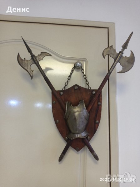 Размери 20см./15см.,дължина на копието 44см.Метал и дърво.