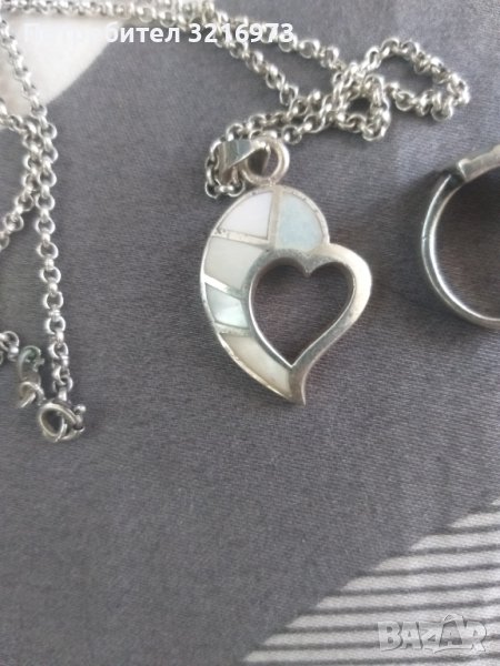 Масивен сребърен пръстен малък размер,вътрешен диаметър 16мм.Сребърна висулка сребро и бял седеф+синжир,стара масивна изработка.Пръстена-продаден!