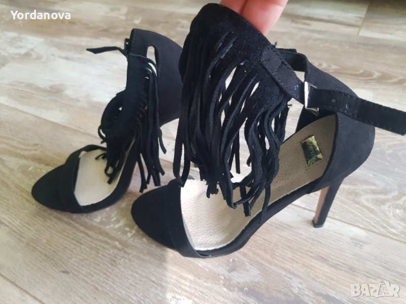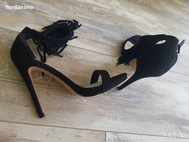 Дамски сандали с висок ток. Номер 38. Велур. Цвят - черен. Обувани само веднъж.