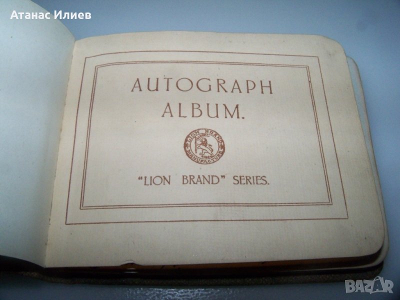 Луксозно албумче за автографи - Autograf album "Lion Brand" series от 1925г. Албумчето не е изцяло запълнено, съдържа няколко красиви рисунки и посвещения. Албумчето е в отлично състояние, подвързано е с луксозни твърди корици. Вероятно е принадлежало на човек на име Едуин Томас от Лондон. Албумчето е с размери 12х9 см.