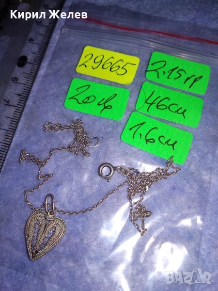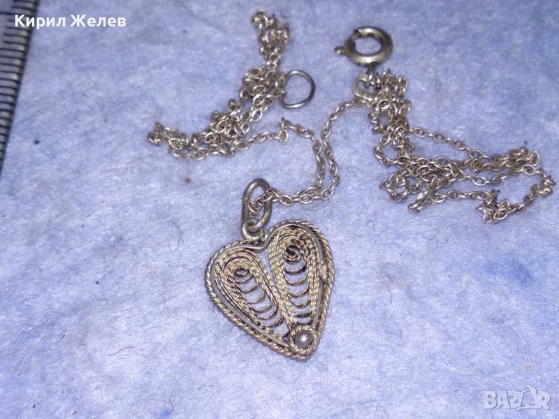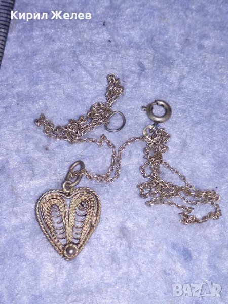 СТАРИНЕН СЪРЦЕВИДЕН МЕДАЛЬОН ФИЛИГРАННО СРЕБРО и СРЕБЪРНА ВЕРИЖКА СРЕБРО 835 МАЙСТОРСКА РАБОТА 29665