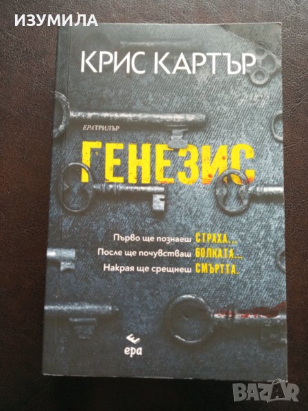 Цената е за двете книги общо. Написано с кръв е чисто нова. Генезис е на един прочит, запазена в почти отлично състояние. Лека гънка в горния десен ъгъл. Прилагам подробни снимки след заглавната. Разполагам с богата библиотека от трилъри, ако търсите нещо друго, което не откривате в обявите - пишете ми. Лично предаване е възможно за Казанлък и Стара Загора, иначе изпращам с Еконт или Спиди с опция преглед. За чужбина само с предварително плащане.