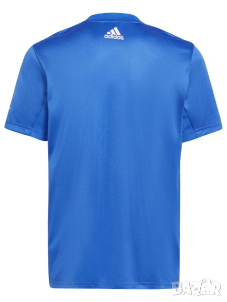 Младежка тениска, подходяща за футбол. AEROREADY технологията изпарява влагата и Ви помага да останете фокусирани върху играта.