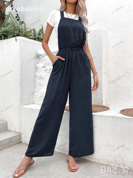 Дамски ежедневен свободен гащеризон с еластичен колан