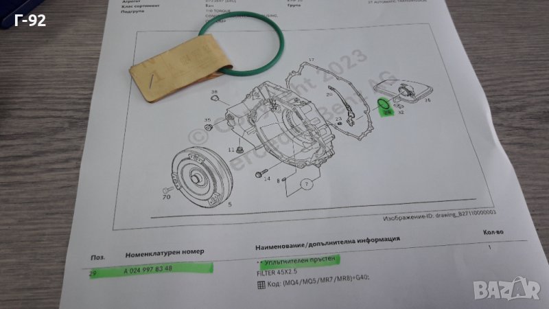 A0249978348**NEU**Mercedes Benz**723. **УПЛЪТНЕНИЕТО ЗА МАСЛЕНИЯТ ФИЛТЪР НА СКОРОСТИТЕ *(