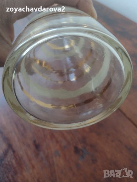 СТАРА БЪЛГАРСКА СТЪКЛЕНА ГАРАФА БУТИЛКА ШИШЕ С ЗЛАТЕН КАНТ - ПОЗЛАТА, СЪС СТЪКЛЕНА ТАПА КРИСТАЛНО СТЪКЛО ОТ ВРЕМЕТО НА СОЦА. СТЪКЛОТО И ЗЛАТНИЯ КАНТ СА ЦЯЛОСТНИ, БЕЗ ОЖУЛВАНИЯ, ОХЛУЗВАНИЯ И ПУКНАТИНИ, ЗАПАЗЕНА. ВМЕСТИМОСТ ДО ГОРЕ 0,500 МЛ.