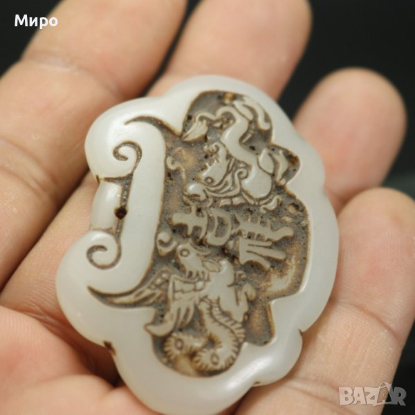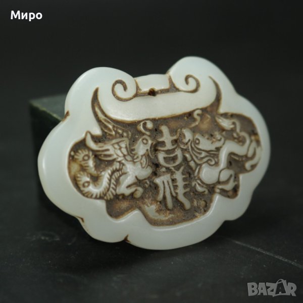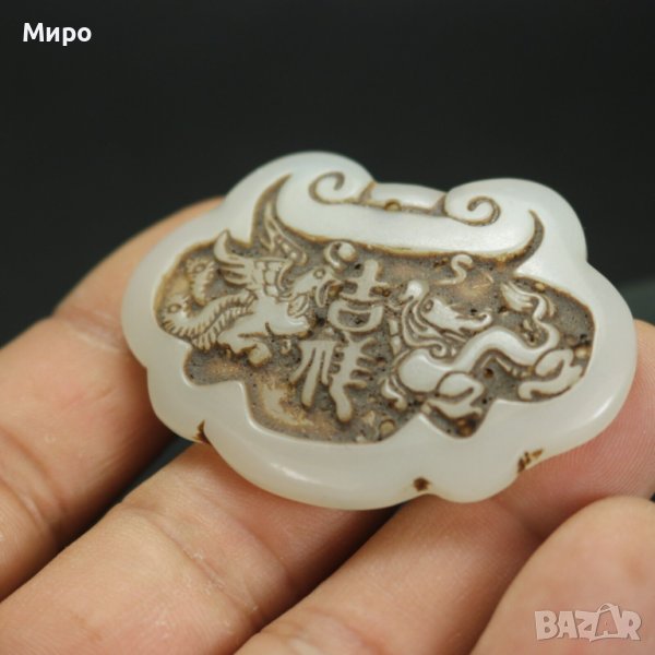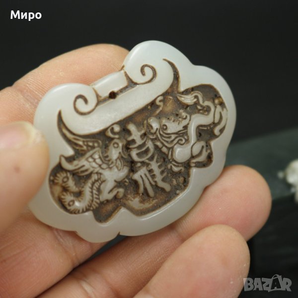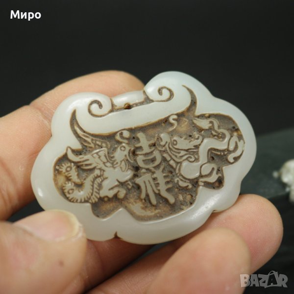 НЕФРИТ ДРАКОН ФЕНИКС МЕДАЛЬОН ВИСУЛКА ГРАВИРАН ГРАВЮРА → Обява 40537059