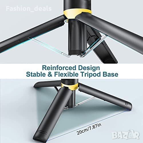 Дизайн 2 в 1: стативът за телефон се разтяга от 19,5 до 84 см и има крачета, които му позволяват да стои без ръце