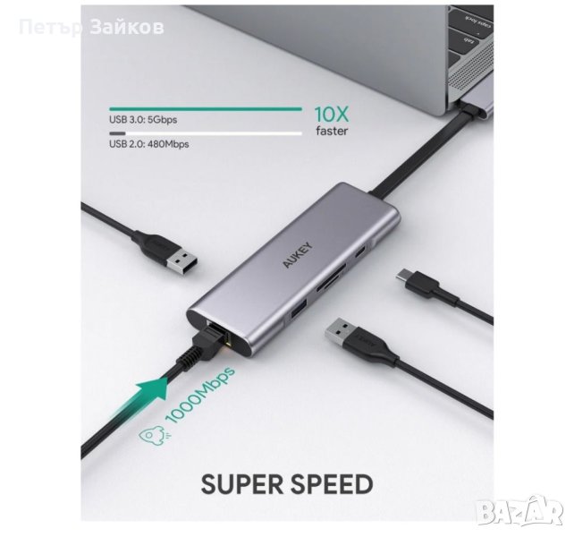 ХЪБ AUKEY CB-C81 2*USB 3.1
