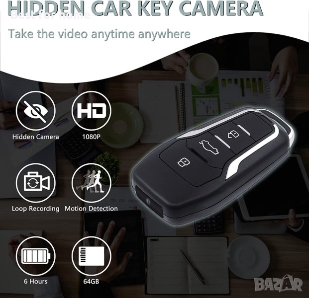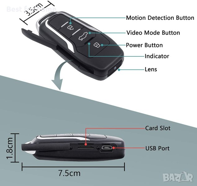 Свалянето и прехвърлянето на цялата информация от картата памет на компютър, лаптоп или мобилно устройство става по два начина. Първият е чрез предвидения в комплекта USB кабел, който служи и за презареждане на батерията. Другият вариант е да поставите картата директно в друго мобилно устройство или в четец, с който да я пъхнете в компютър. Ключодържателят дистанционно за кола със скрита камера е бутафорно и не може да отключва или заключва автомобили, независимо каква марка са те. Основната му цел е да запише важна среща, да снима незабелязано документи и още много други неща по изключително лесен и дискретен начин.